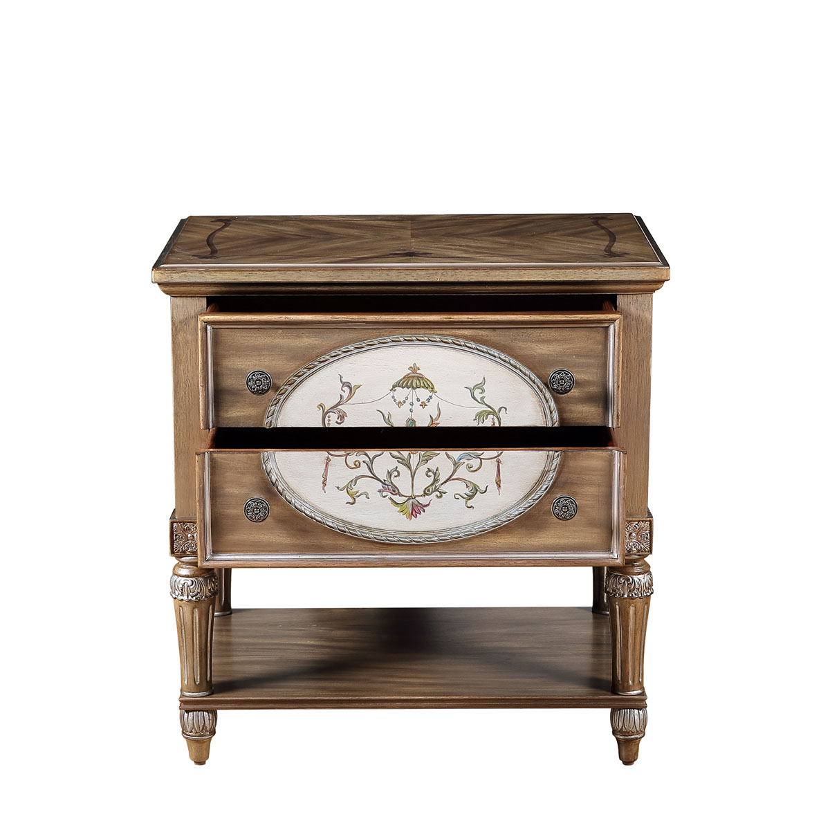 * 二個抽斗,底部裝有硬木實木滑軌; * 可拆裝設計; * 底部的層板可放置家庭裝飾品; * 底部裝有可調整腳釘;