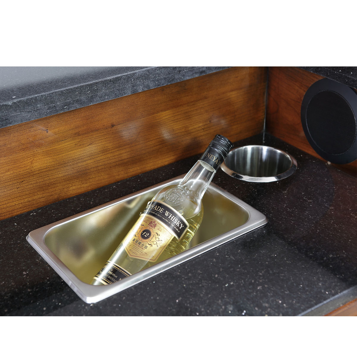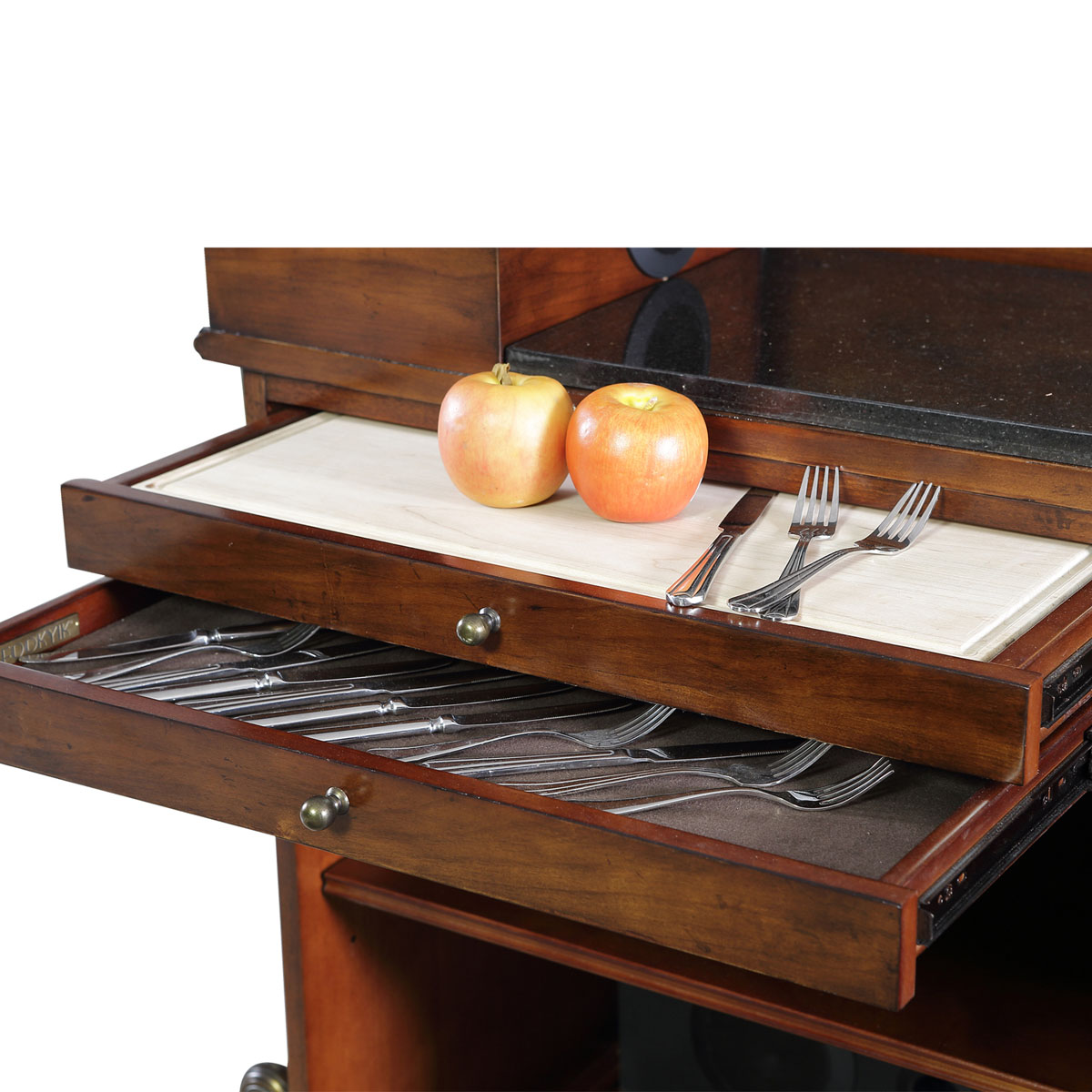 * 從17世紀(jì)意大利帝國(guó)EMPIRE風(fēng)格中汲取設(shè)計(jì)靈感,以拼花描金裝飾外觀,臺(tái)面采用精致實(shí)用的大理石,腳踏為珍貴的金屬材質(zhì),櫻桃木實(shí)木砧板與防生銹刀叉存格可用來料理享用美食,冰桶配冰杯是調(diào)制飲料的好幫手。搭載藍(lán)牙播放器、高品質(zhì)音響及觸摸LED燈開關(guān),完美演繹意大利人重生活更懂藝術(shù)的品位追求。