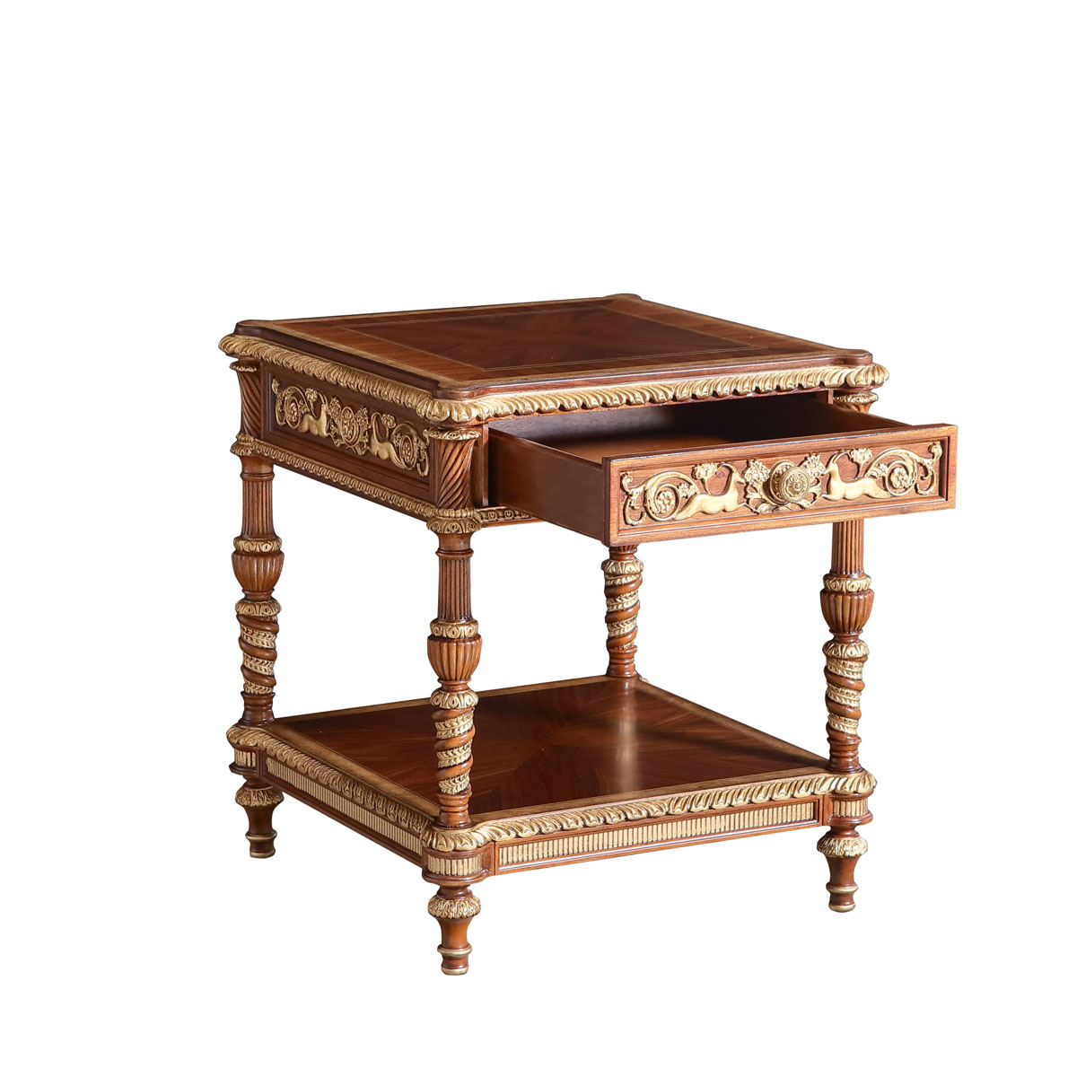 * 為表現(xiàn)英國(guó)皇室的華麗和莊嚴(yán),以英國(guó)溫莎堡為設(shè)計(jì)元素。使用復(fù)古的雕刻柱,來(lái)表達(dá)英國(guó)皇室的優(yōu)雅,配上精致的木皮貼面與工藝,完美演繹了英式宮廷家具的奢華尊貴。