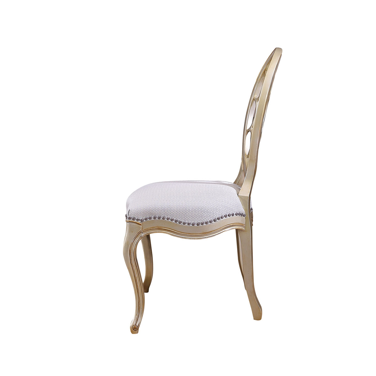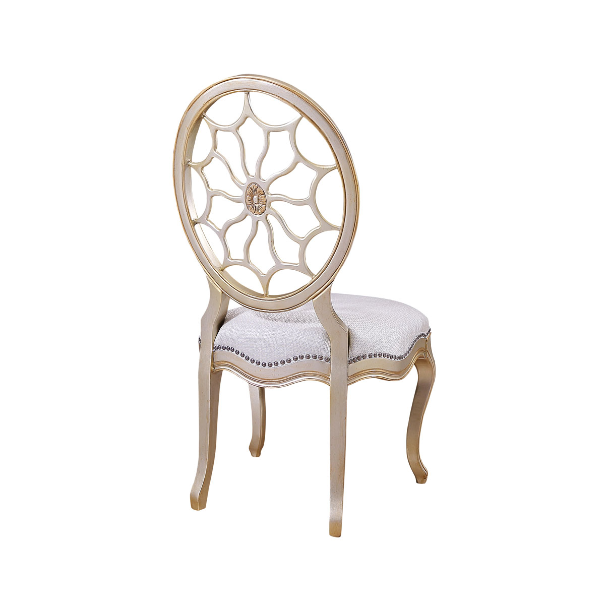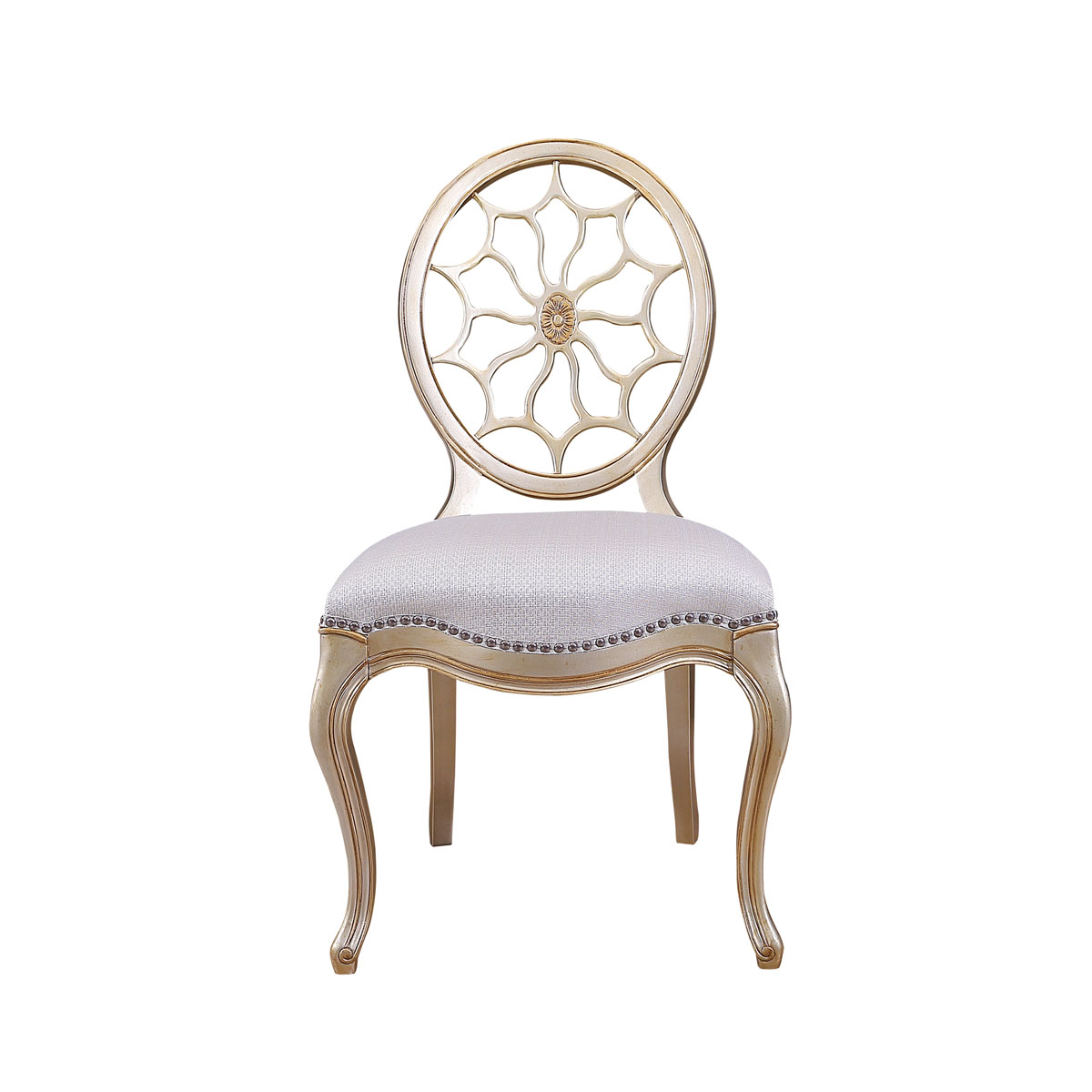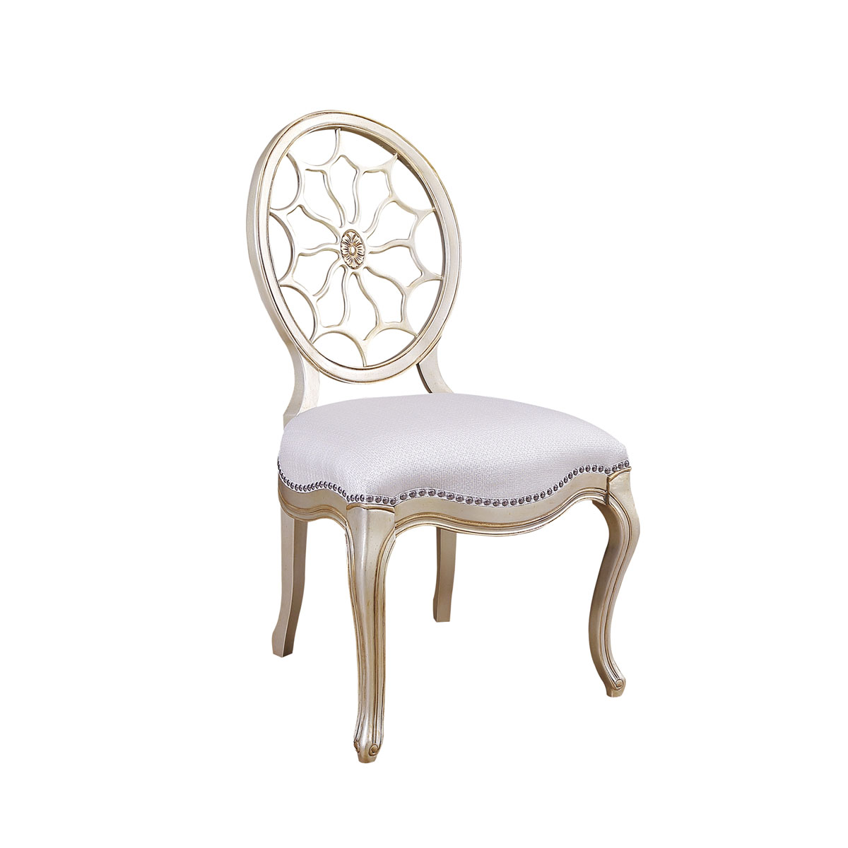 * 參考喬治三世時期的古董造型設計,使用輪子構造椅背和安妮王后腿,配以精致的手工雕刻細節和涂金工藝、布藝面料和厚實柔軟的填充物,是豪華系列凡爾賽玫瑰法式單椅的特色。
