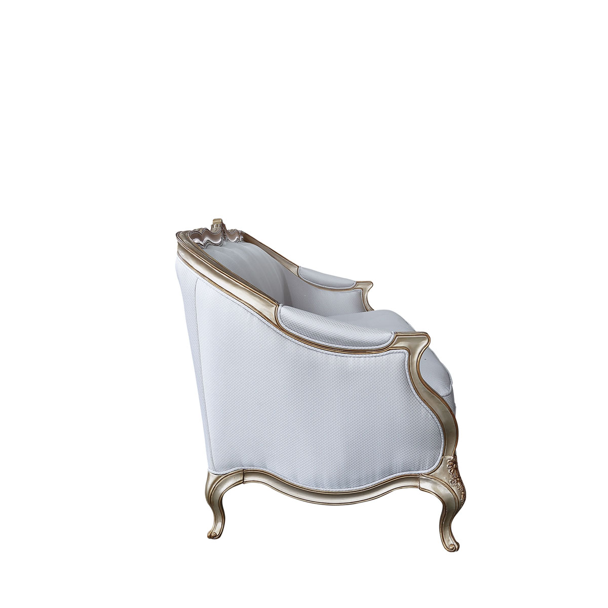 * 沙發外形布滿手工實木雕刻的花環和卷葉圖案 ; * 6只彎形雕刻腳 * 沙發前方、坐墊及背部包有豐厚的填充物 ; * 扶手設計源于法式經典翼背椅(Wing Back Chair) ;
