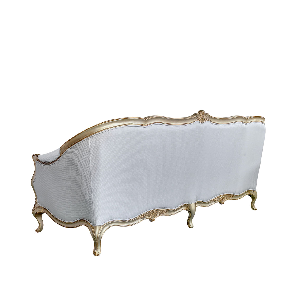 * 從法國十八世紀初攝政時期的風格中汲取靈感制作而成,采用了同風格的彎腳設計,阿坎瑟斯葉雕刻造型和金箔貼飾,再飾以繁花綻放圖案的絲綢和包有豐厚的填充物坐墊和靠背,使得這款沙發閃耀著華麗高貴的光環。
