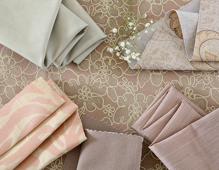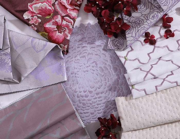 淡黃淺灰為底,樟棕枝葉和香薰色枝藤,以及香檳紫三者構成極為豐富飽滿的意境圖案,既表現春意纏綿的清新浪漫,也呈現出一種繽紛、張力十足的視覺感官。在空間整體造型上,不僅達成一致性,色調之間也容易形成均衡的美感。