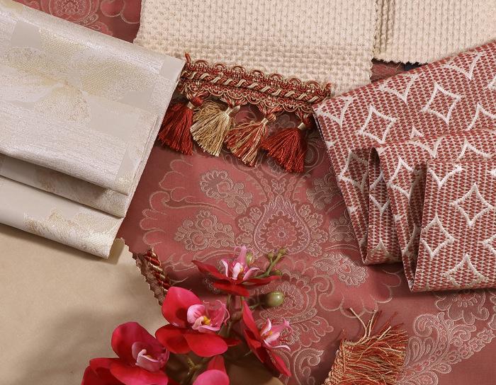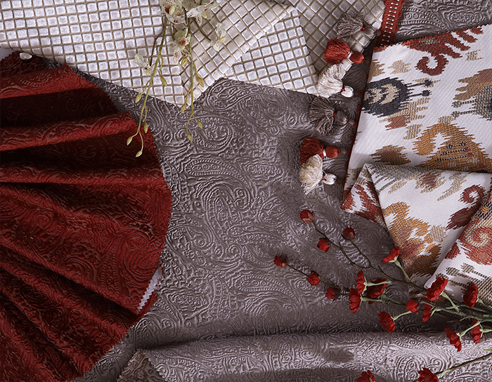觸感細膩柔軟的優質布藝,大膽的紅色,溫暖而熱情,當中朵朵綻放的花形如團團烈火,閃耀熾熱光芒,傳遞著生活的熱度。