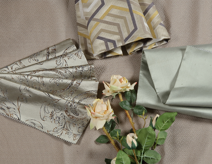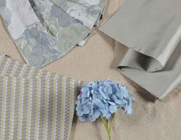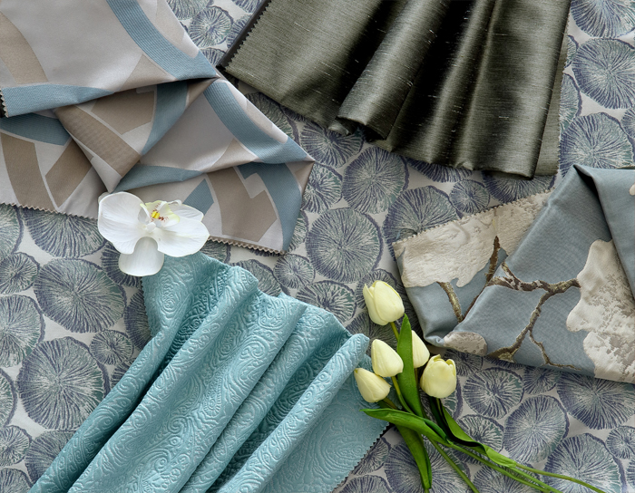 加了灰色調的尼加拉藍多了幾分靜謐柔美,來自度假天堂的顏色,舒緩放松;絲緞布藝具有非常美麗的光澤感和層次感更顯質感和活力。
